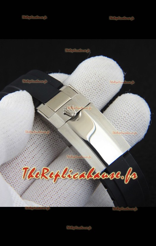 Bracelet en caoutchouc Oysterflex avec boucle Rolex et gravures Rolex.
