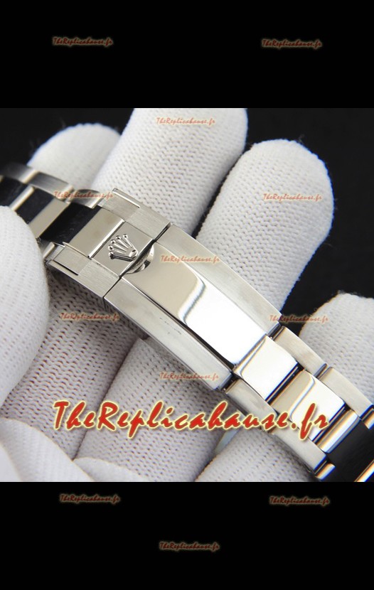 Bracelet en acier inoxydable 904L avec fermoir Rolex et gravures Rolex.