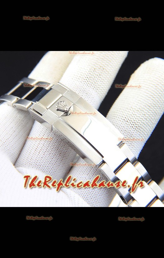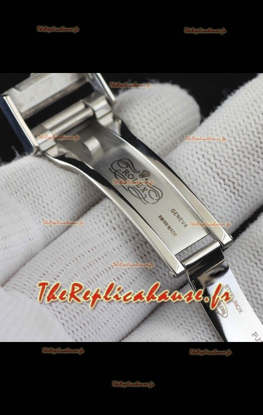 Bracelet en acier inoxydable 904L avec fermoir Rolex et gravures Rolex.