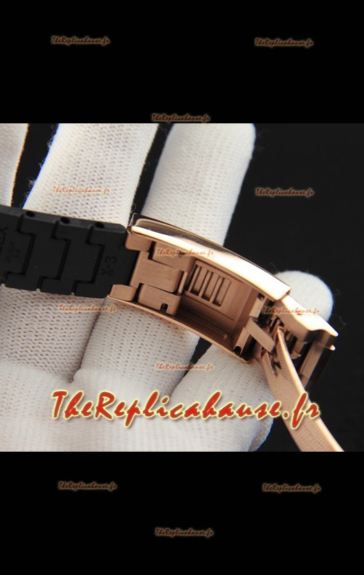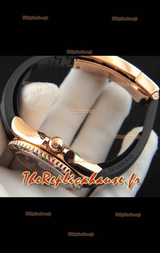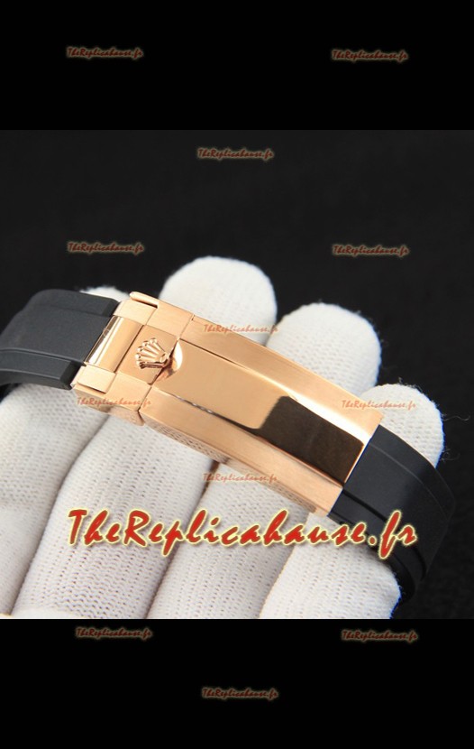 Bracelet en caoutchouc Oysterflex avec boucle Rolex et gravures Rolex.