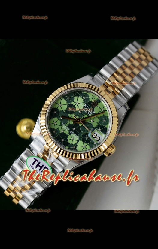 Montre Rolex Datejust Cal.3235, mouvement Super Clone, bicolore or jaune, cadran à motifs, 31 mm