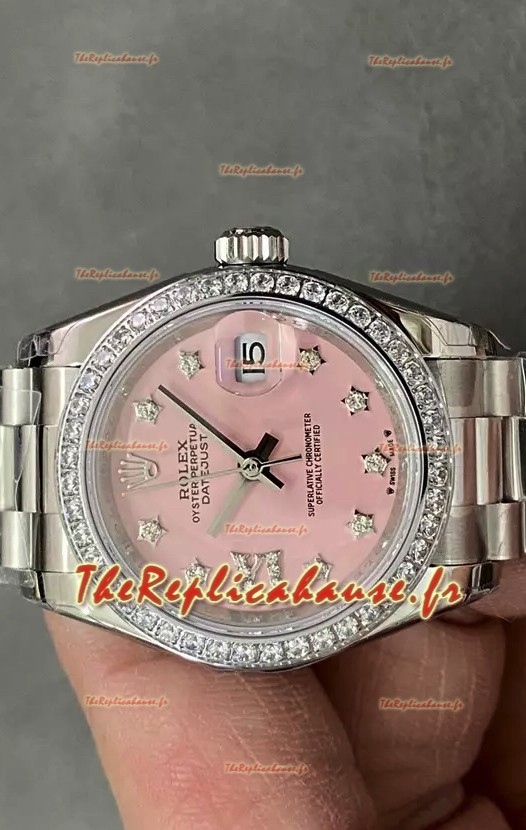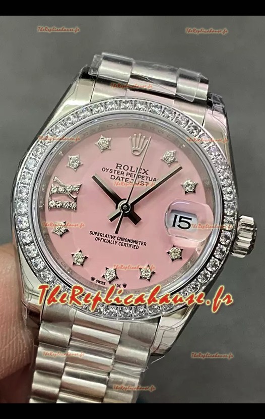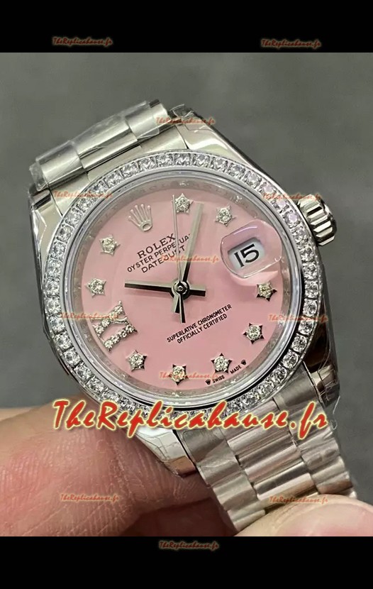 Montre Rolex Datejust Super Clone avec cadran rose et boîtier en acier 28 mm