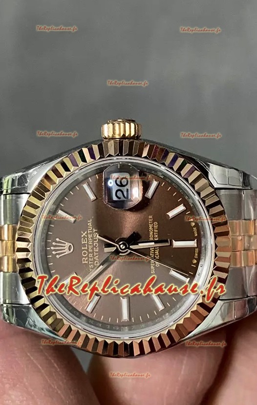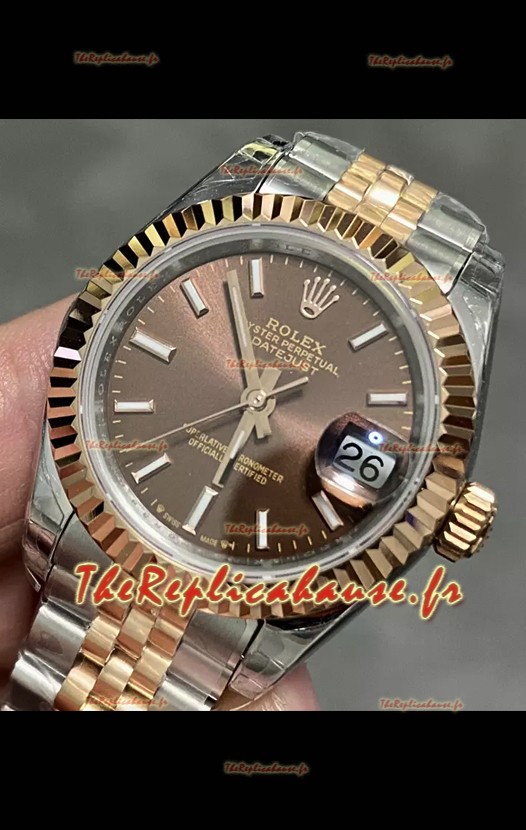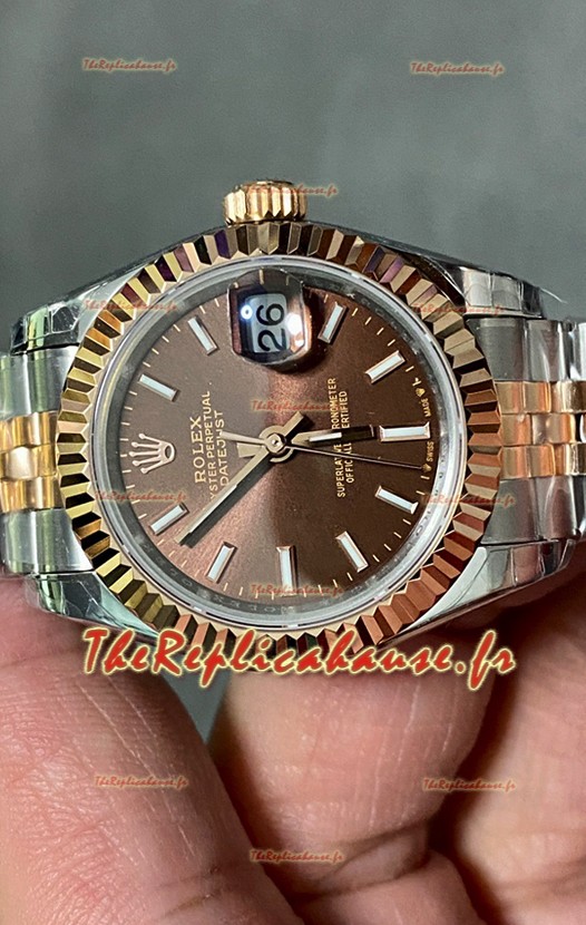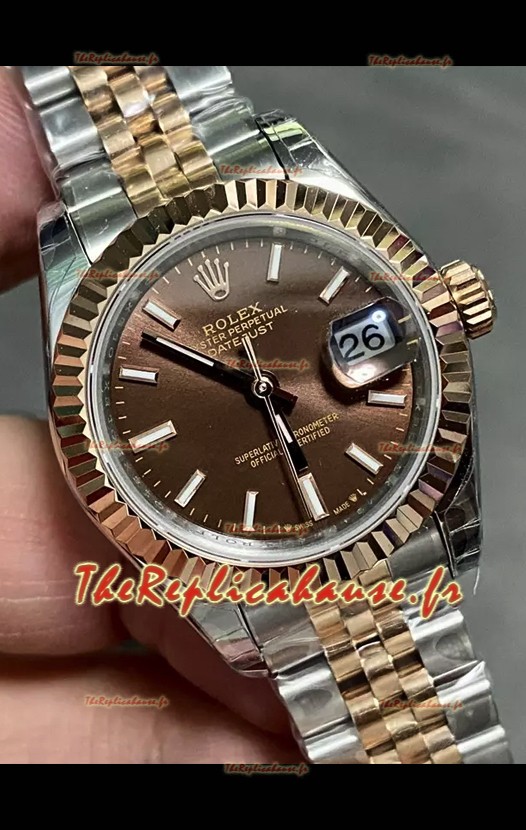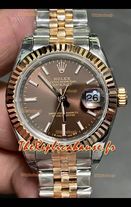 Rolex Datejust Super Clone Cadran marron Montre bicolore Or rose 28 mm