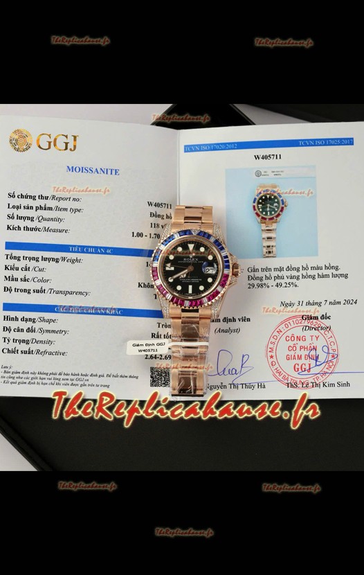 You're reviewing: Montre Rolex GMT Master Super Clone sertie de diamants, boîtier en or rose 904L - Qualité miroir 1:1
