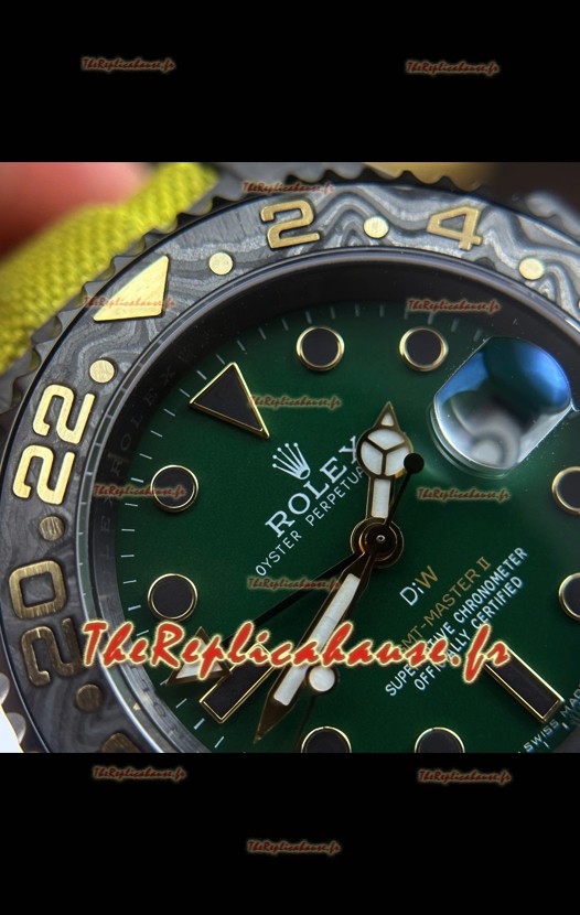 Montre Rolex GMT Master II diw, réplique suisse, boîtier en carbone, cadran vert,