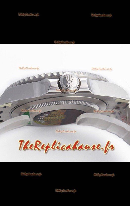 Boîtier en acier inoxydable 904L, comme l'original, avec des inserts en céramique noir/vert métallisés.
