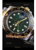 Rolex GMT Masters II Two Tone d'Or Jaune Montre avec Cadran Vert