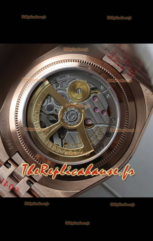 Boîtier et lunette en acier inoxydable 904L plaqués or rose 18 carats, avec tous les marquages et gravures Rolex.