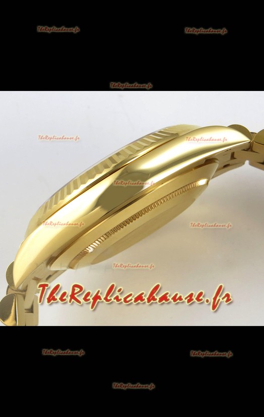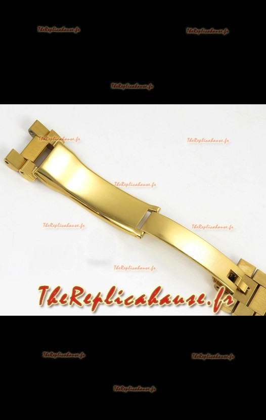 Bracelet President en acier inoxydable 904L plaqué or jaune 18 carats avec boucle déployante et marquages Rolex.