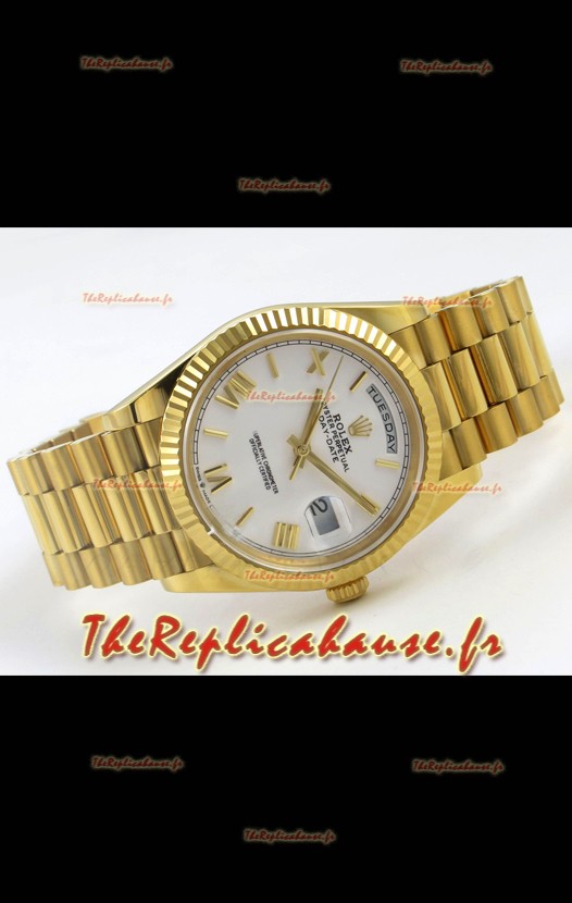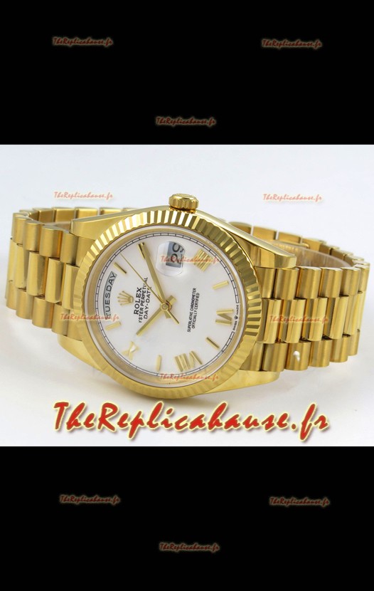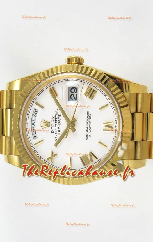 Montre réplique suisse Rolex Day Date Super Clone, cadran blanc, 40 mm, 220 grammes
