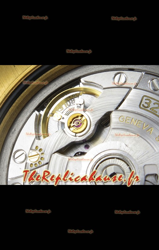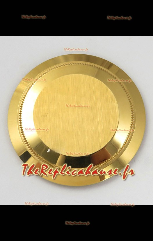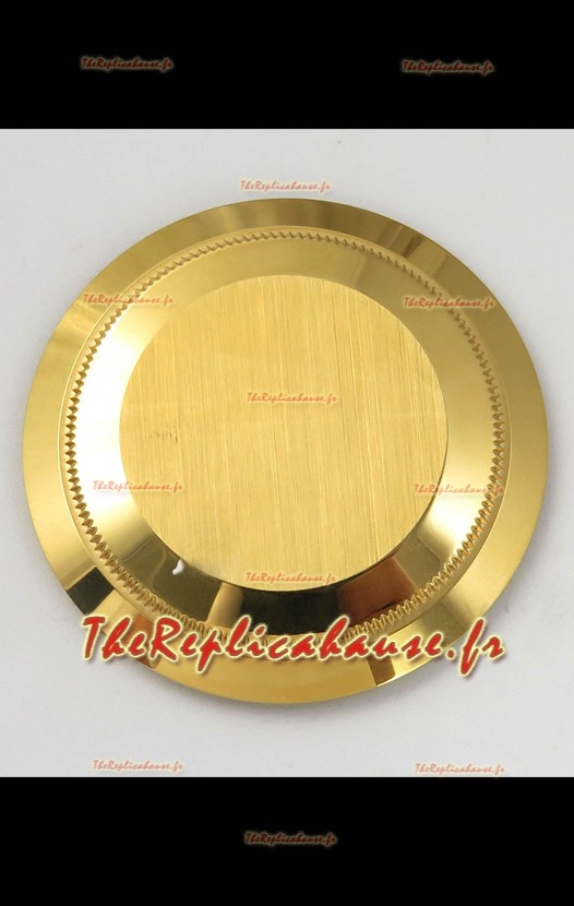 Boîtier en acier 904L plaqué or jaune 18 carats, arborant toutes les gravures et marquages Rolex d'origine.