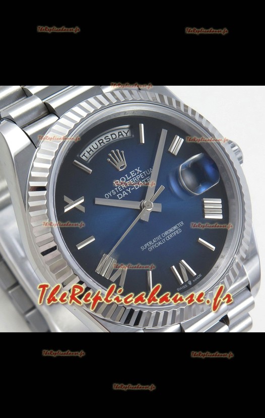 Montre Rolex Day Date Super Clone Cadran Bleu à Chiffres Romains 40 mm 220 grammes Réplique Suisse