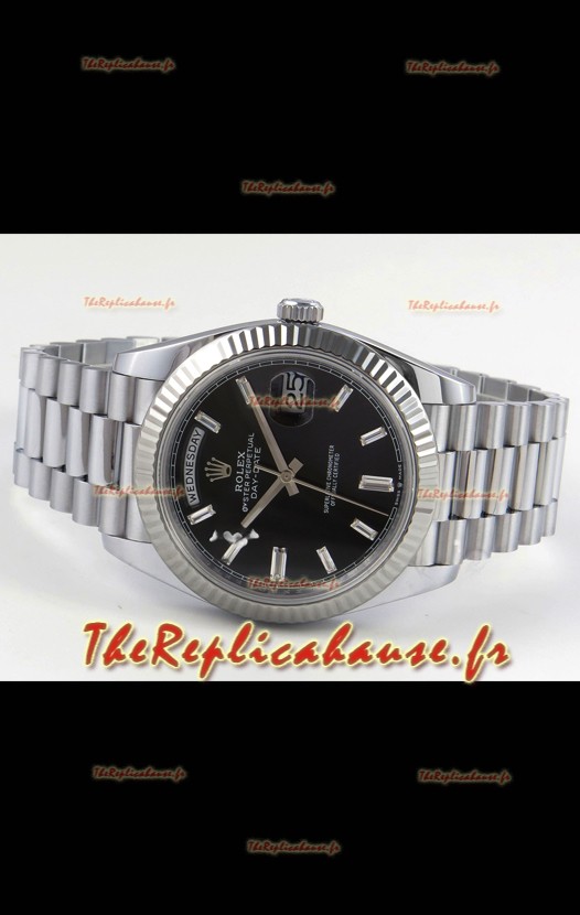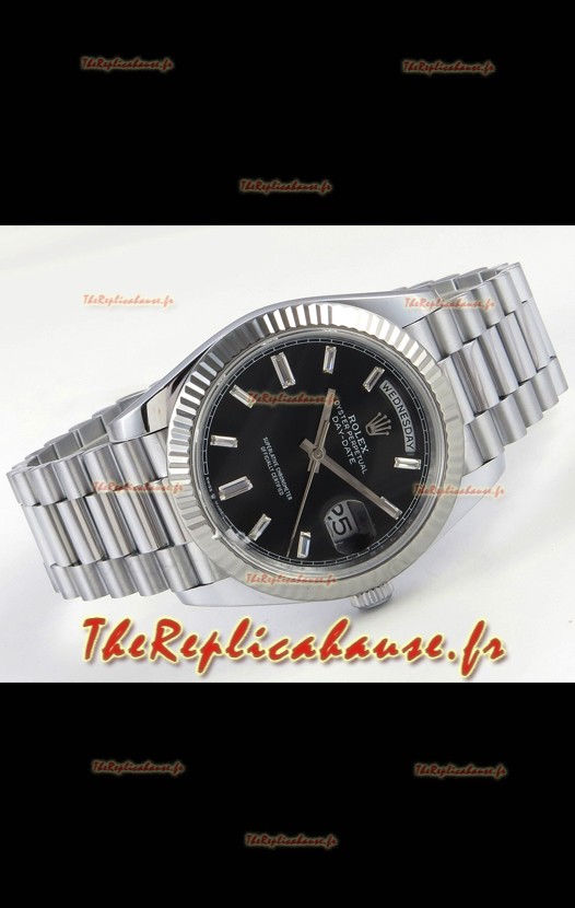 Montre Rolex Day Date Super Clone Cadran Noir 40MM 188 Grammes Réplique Suisse