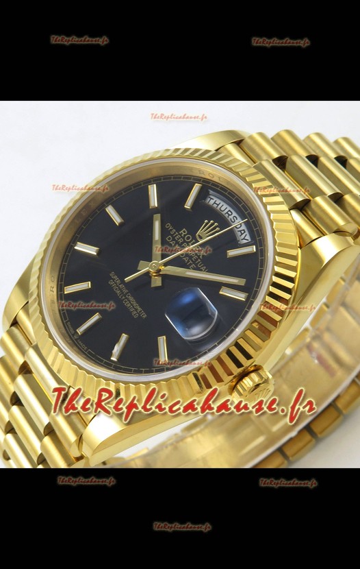 Montre Rolex Day Date Super Clone Cadran Noir 40MM 220 Grammes Réplique Suisse