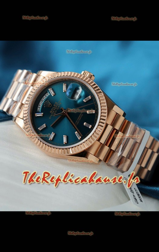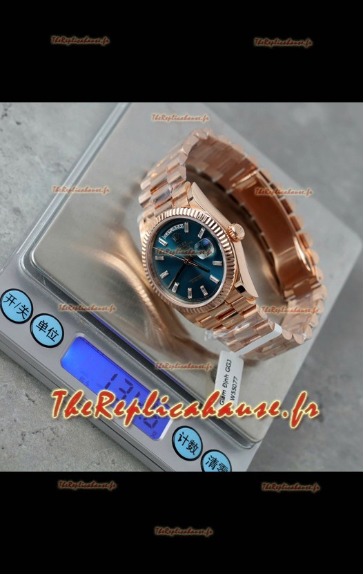 You're reviewing: Montre Rolex Day-Date Super Clone Or Rose Cadran Bleu Chiffres Cristal 36 mm - Qualité Miroir 1:1