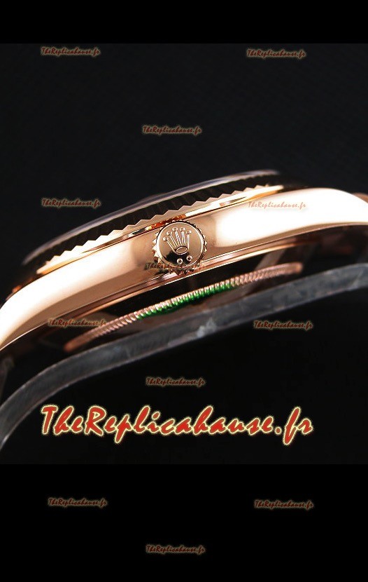 Cristal de Saphir Authentique Résistant aux Rayures avec Revêtement Anti-Réfléchissant. L'épaisseur et l'hauteur de Cristal au-dessus du Cadran sont maintenant exactement comme l'original. Couronne gravée sur le Cristal à 6 O'Clock, la clarté et la visibilité de la Couronne sont exactement comme l'original Qui n'est pas facilement visible et nécessite un grossissement pour voir clairement. Cristal a été Actualisé pour avoir une surface plus arrondie au bord par rapport à l'original.