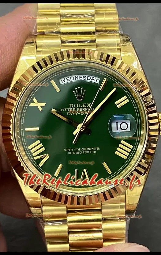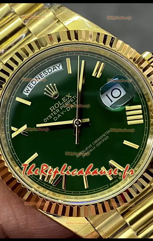 Rolex Day Date Presidential Montre en or jaune 18 carats 40MM - Cadran vert Qualité Miroir 1:1