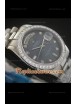 Cadran Nacré avec Fenêtres de Date et Jour avec Lunette de Diamants et Index Horaires de Diamant