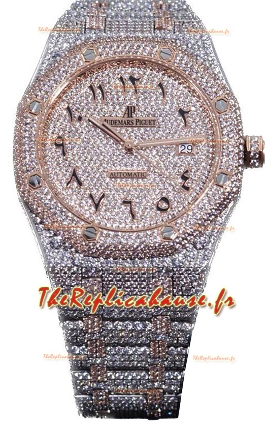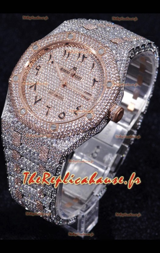Audemars Piguet Royal Oak 15400 Iced Out Cadran arabe dans un boîtier en or rose bicolore Réplique de montre suisse
