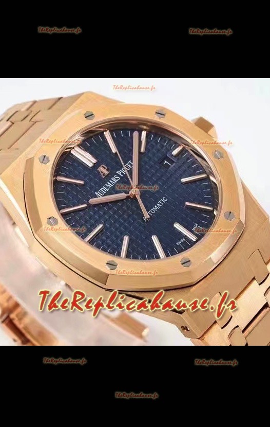 Placage or rose 18 carats sur bracelet 904L relié par des vis, boucle déployante de style AP, exactement comme les originaux.