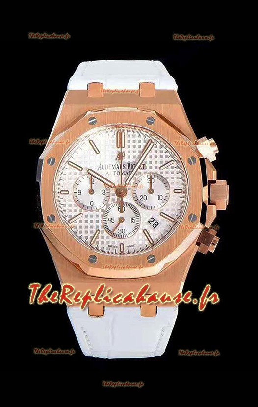 Chronographe Audemars Piguet Royal Oak Cadran blanc Or rose sur acier 904L - Réplique miroir 1:1