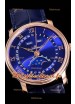 Bracelet en cuir bleu véritable avec fermoirs Foloding en acier plaqué or rose avec marquages et gravures Blancpain.