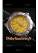 Cadran jaune avec les Marqueurs de l'heure bâton et l'Indicateur de la date avec Marquages __nettes sur le Cadran