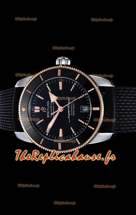 Breitling SuperOcean Heritage II 44MM Cadran noir deux tons 904L Sangle en caoutchouc Réplique 1:1