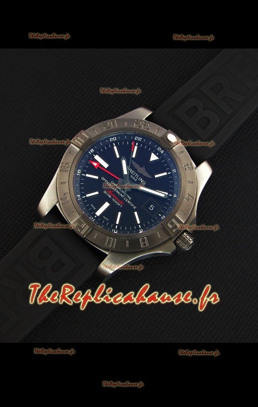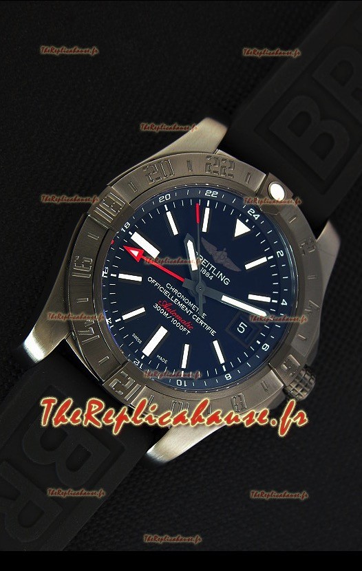 Montre Breitling Avenger II BlackSteel GMT Suisse bracelet en caoutchouc Réplique à l’identique 1:1