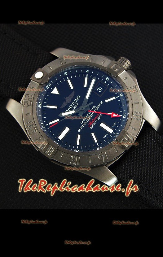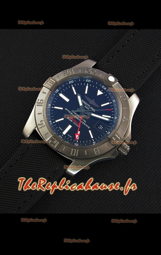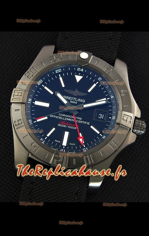 Montre Breitling Avenger II BlackSteel GMT Suisse bracelet en nylon Réplique à l’identique 1:1