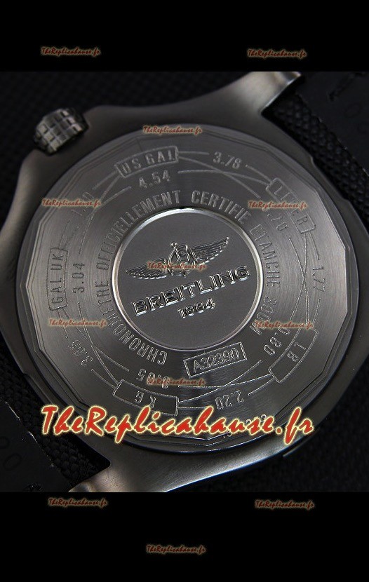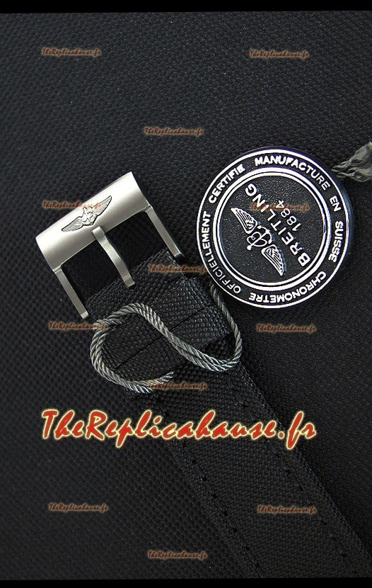 Bracelet en nylon véritable avec boucle à ardillon en acier recouverte d’un revêtement DLC avec marquages et gravures Breitling