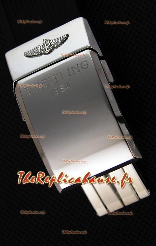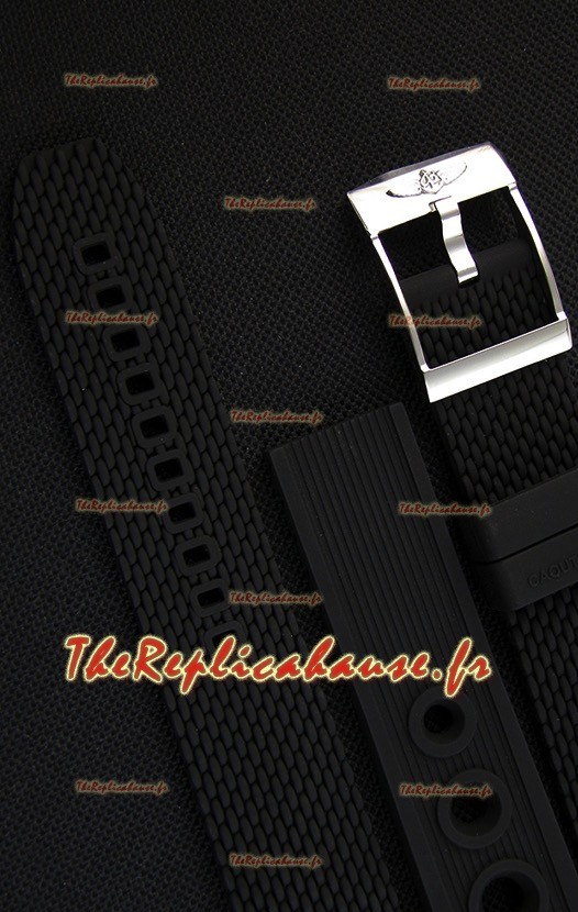 Bracelet en caoutchouc véritable avec boucle à ardillon en acier avec marquages et gravures Breitling.