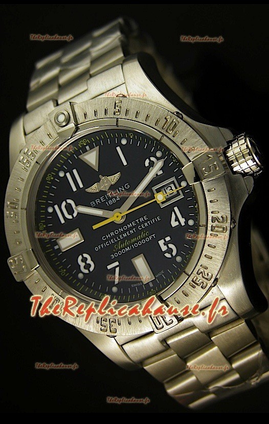 Réplique de montre suisse Breitling Avenger Seawolf avec aiguilles des secondes jaunes - 1:1 Réplique de montre miroir