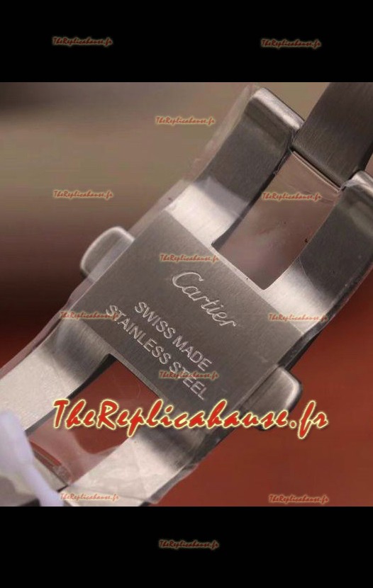 Boîtier en acier inoxydable 904L avec marquages Cartier comme sur les modèles originaux.