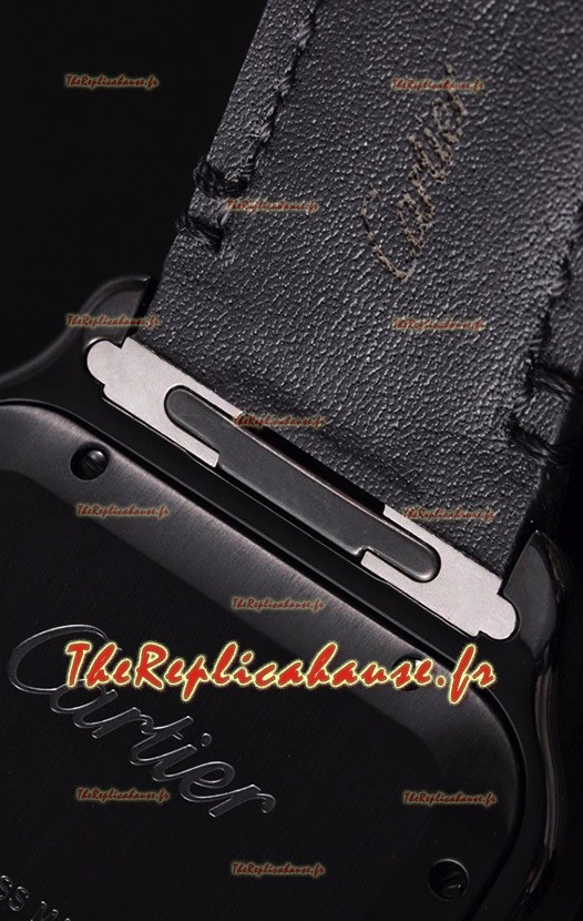 Revêtement PVD sur le boîtier en acier inoxydable 316L avec marquage Cartier comme sur les modèles originaux.
