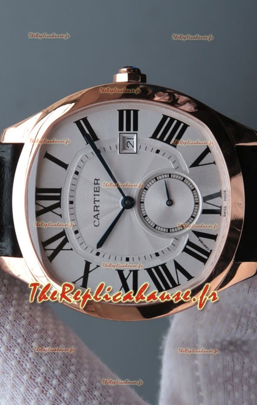 Montre "Drive De Cartier" 1:1 Réplique en plaqué or rose - cadran blanc