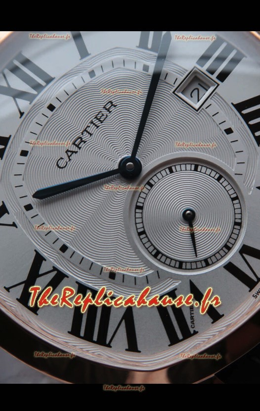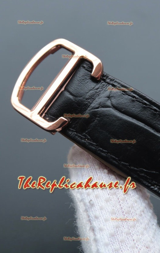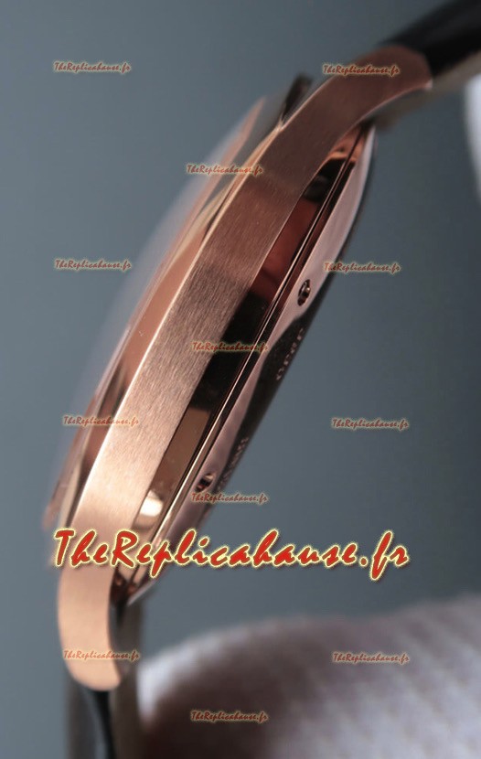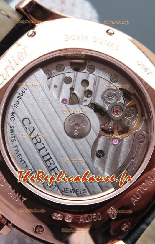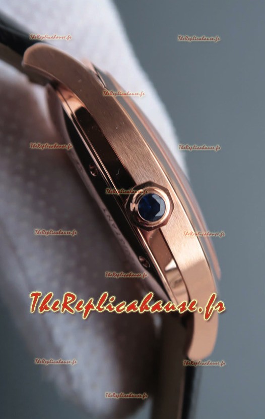 Boîtier en acier inoxydable plaqué or rose avec marquage Cartier comme pour les modèles originaux.