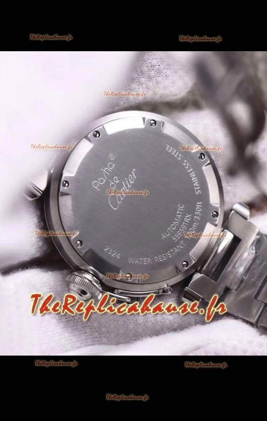 Boîtier en acier inoxydable 904L avec marquage Cartier comme sur les modèles originaux.