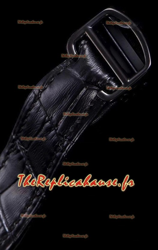 Boîtier en acier inoxydable 316L avec revêtement DLC noir et marquage Cartier conforme aux originaux.