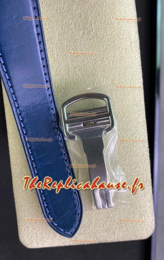 Bracelet en cuir véritable avec boucles déployantes, avec marquages et gravures Cartier. Système d'attache rapide comme pour les originaux.