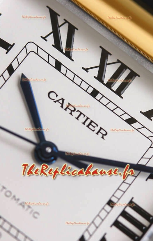 Boîtier en acier inoxydable 904L avec marquages Cartier comme sur les modèles originaux.