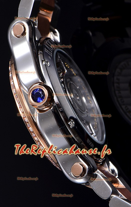 Boîtier bicolore en or rose 18 carats sur acier inoxydable 904L avec marquage Chopard comme à l'origine.