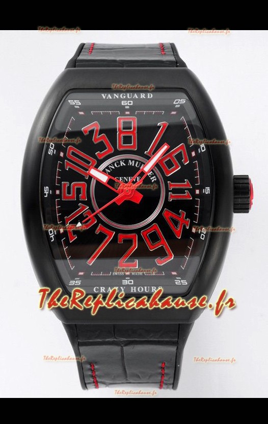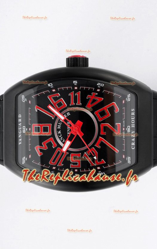 Franck Muller Vanguard Crazy Hours - Boîtier DLC - Cadran noir - Réplique Suisse
