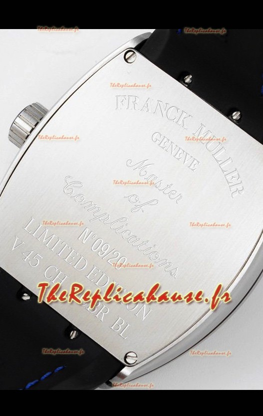 Bracelet en cuir véritable de haute qualité, recouvert de caoutchouc, avec marquages et gravures Franck Muller et boucle déployante en acier inoxydable.