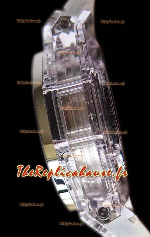 Boîtier PUC mono-pièce léger et transparent complété avec marques et gravures Hublot
