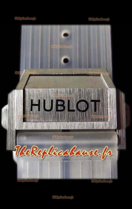 Bracelet en caoutchouc avec fermoirs en acier avec marques et gravures Hublot.