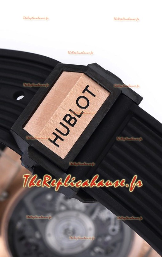 Bracelet en caoutchouc véritable avec boucle déployante avec marquages et gravures Hublot