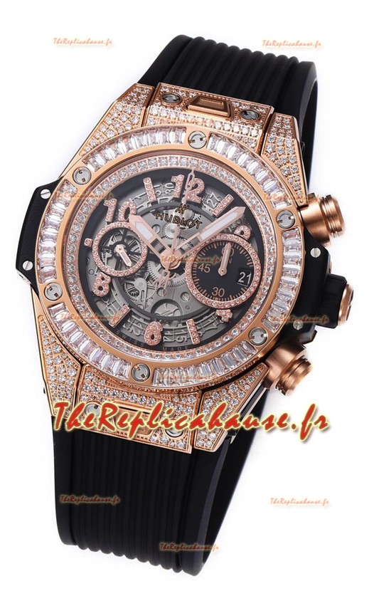 Hublot Big Bang Unico Or Rose Boîtier Diamants Edition miroir 1:1 Réplique Suisse