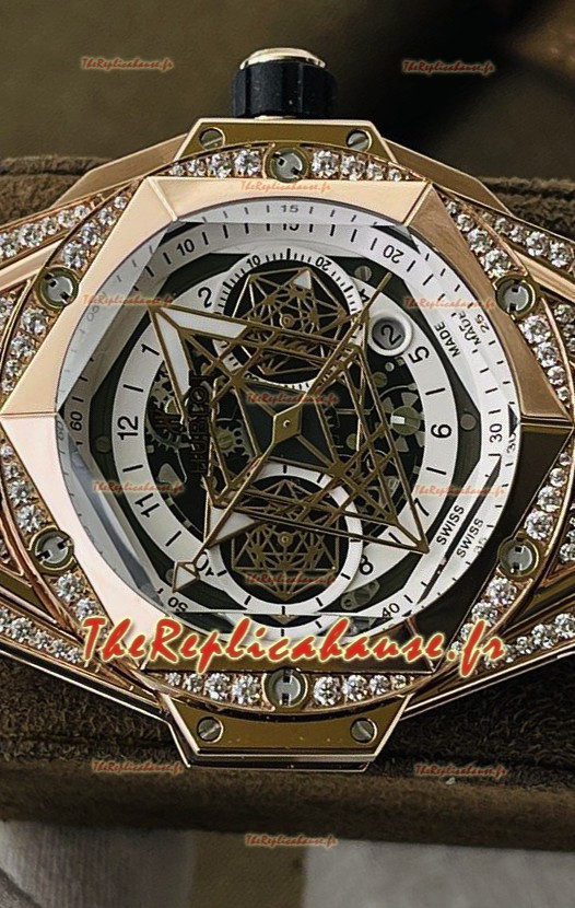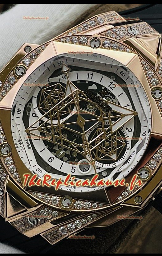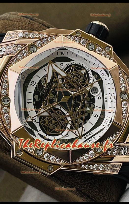 Hublot Big Bang UNICO Sang Bleu II Or Rose Diamants Qualité Miroir 1:1 Réplique Suisse