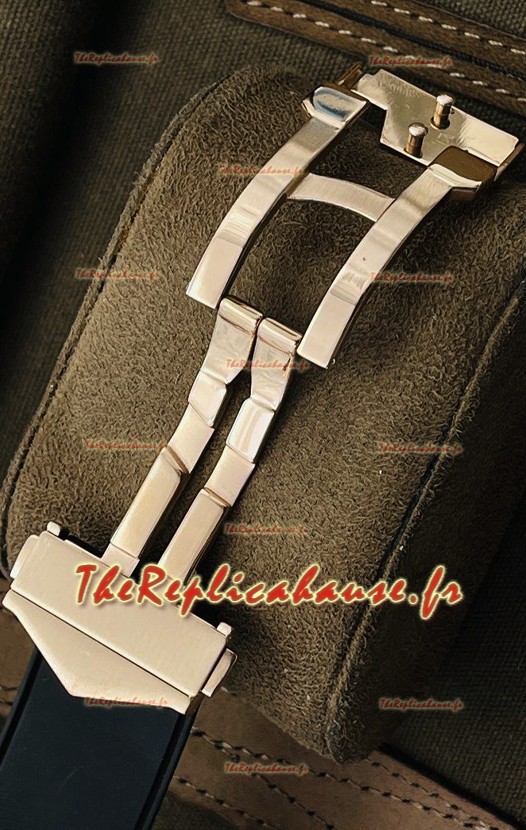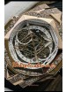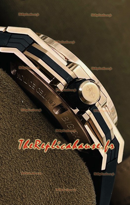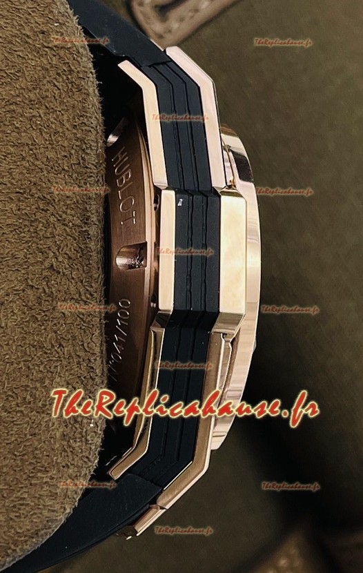Placage en or rose 18 carats avec diamants incrustés sur un boîtier en acier inoxydable 904L de forme géométrique, l'une des techniques de production de boîtier de montre les plus avancées sur une réplique de montre pour lui donner un aspect miroir 1:1.